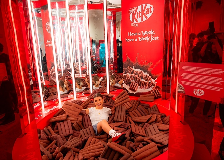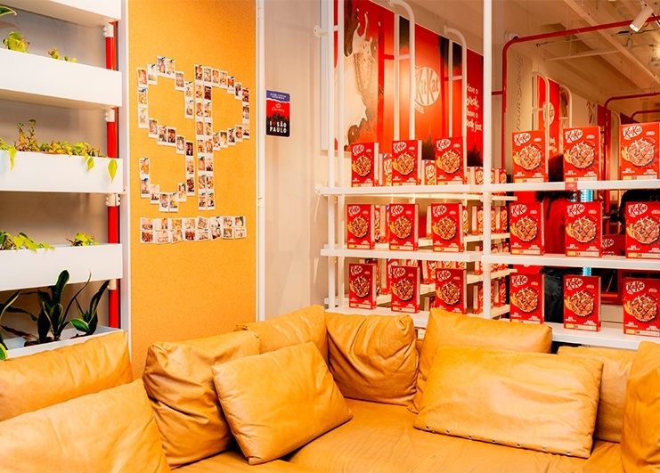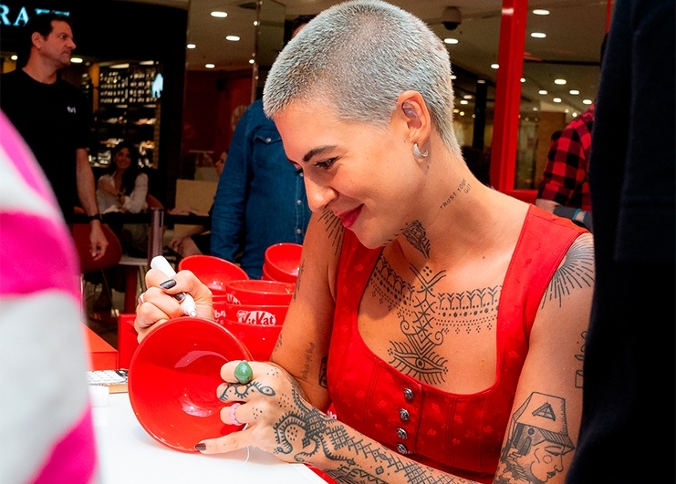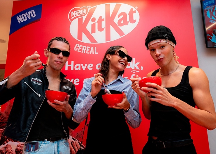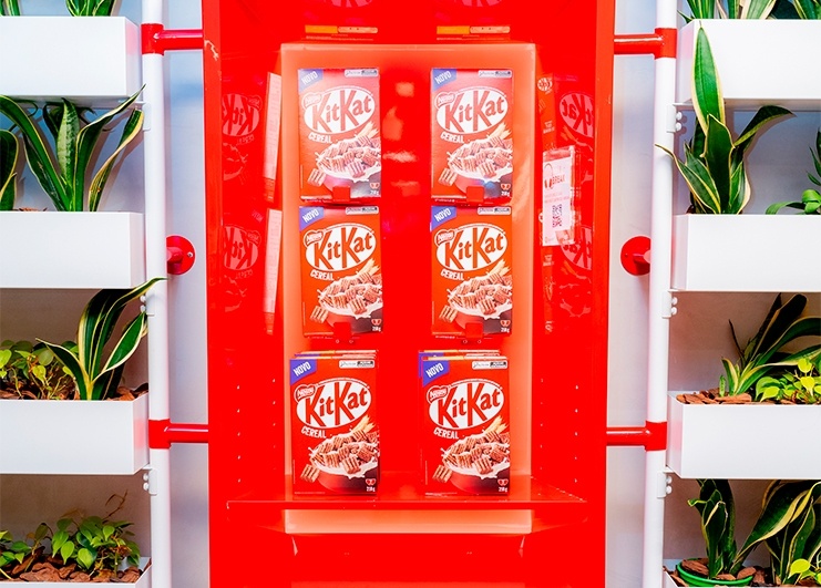 O lançamento do novo KitKat Cereal foi na loja oficial da marca, a Chocolatory do Shopping Morumbi. Criamos um delicioso café da manhã para cerca de 200 influencers e jornalistas no espaço que customizamos especialmente para a experiência. Teve degustação do cereal com leite, iogurte e fruta, um espaço de fotos para se sentir dentro do bowl do cereal e uma arte personalizada pela artista Bruna Frog.