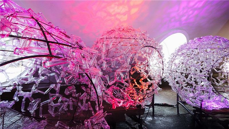 a estrutura do espaço foi construída com papelão reutilizado e sua vegetação, doada para hortas comunitárias.